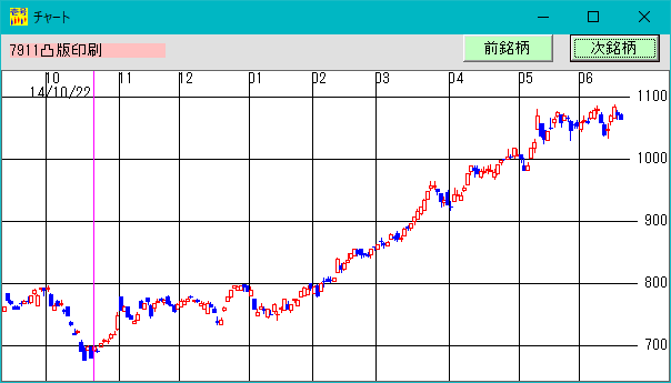 - 今回の相場に乗り遅れた方々も、次回に期待しましょう!そして、その時こそ儲けていこうではありませんか!相場は、なくなりません。日足検索No.1は、過去の日についても調べることが出来ます。それまでに本ソフトの特長を掴んでおき、将来の買い場に備えましょう。
